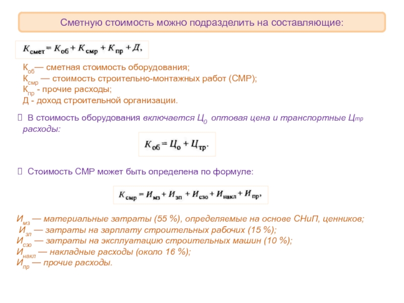 Имз — материальные затраты (55 %), определяемые на основе СНиП, ценников;