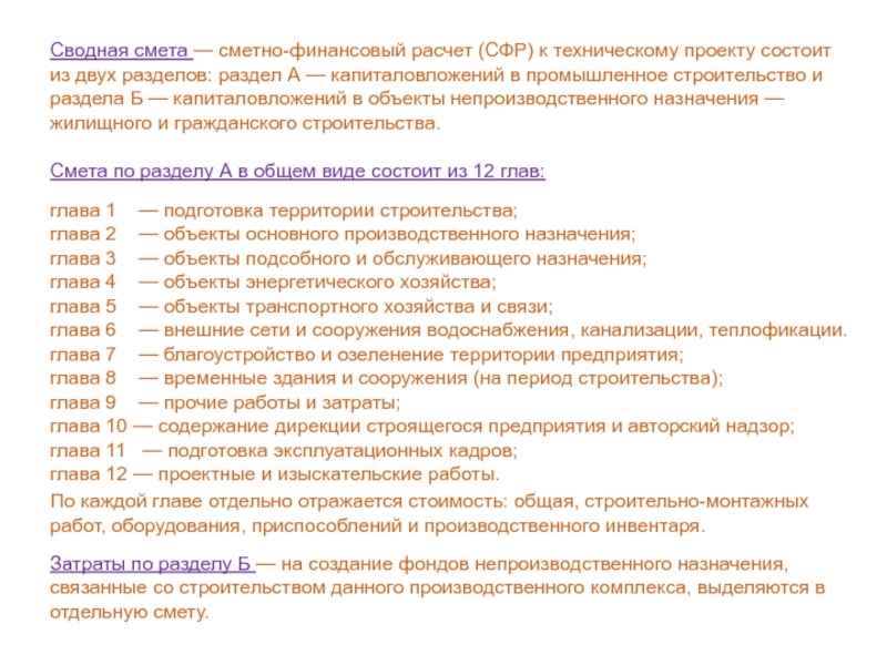 Затраты по разделу Б — на создание фондов непроизводственного назначения, связанные со строительством данного производственного комплекса, выделяются в отдельную смету.