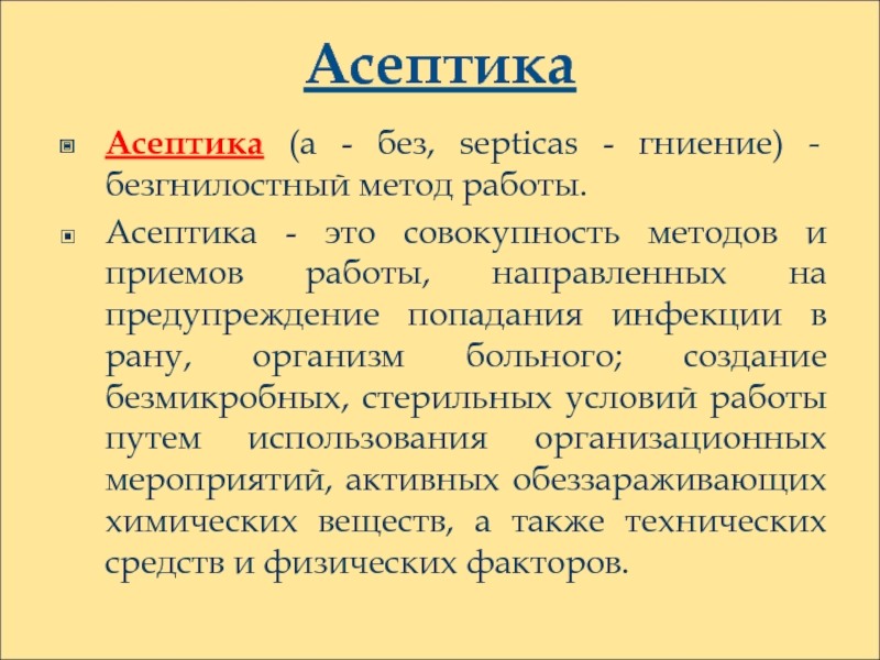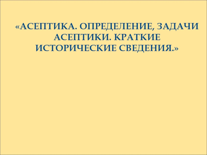 Слайд 2«Асептика. Определение, задачи асептики. Краткие исторические сведения.»