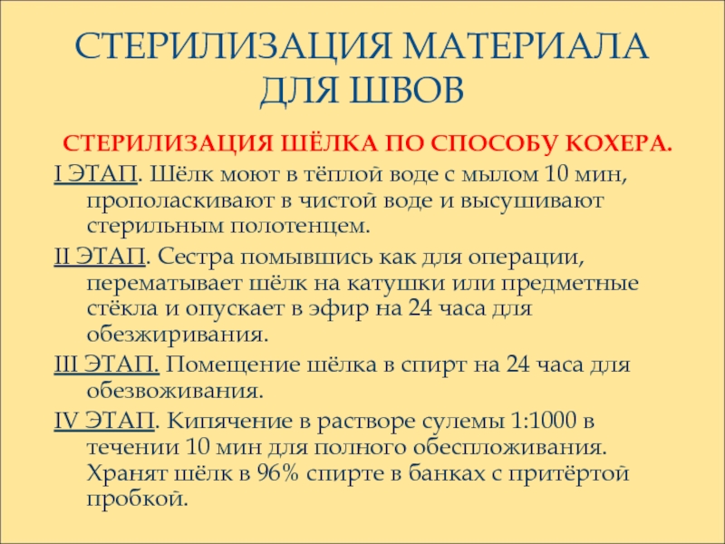 СТЕРИЛИЗАЦИЯ ШЁЛКА ПО СПОСОБУ КОХЕРА.