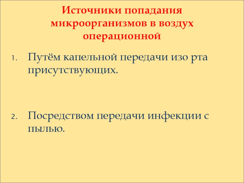 Слайд 6Источники попадания микроорганизмов в воздух операционной