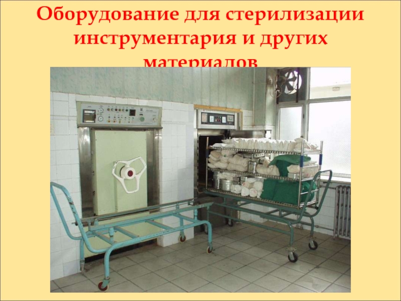 Слайд 20Оборудование для стерилизации инструментария и других материалов