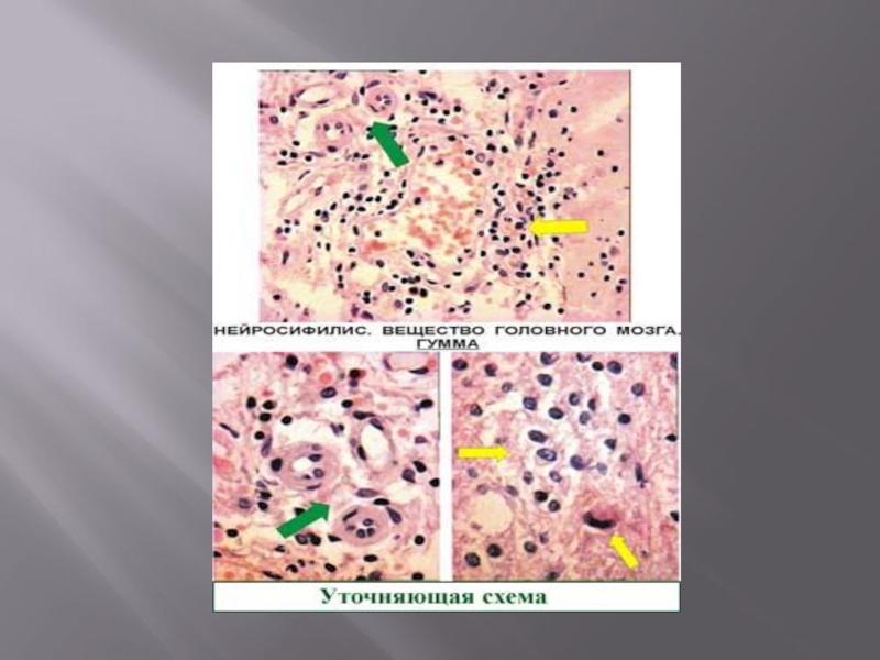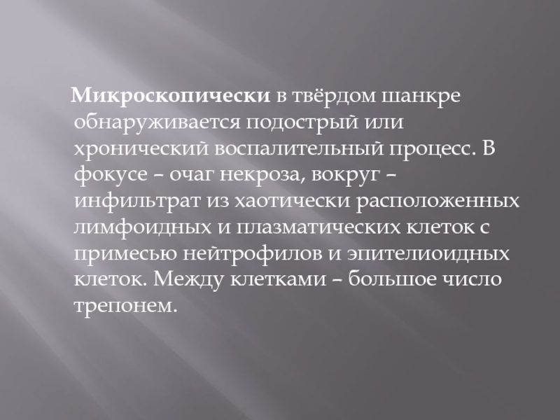 Слайд 8 Микроскопически в твёрдом шанкре обнаруживается подострый или хронический