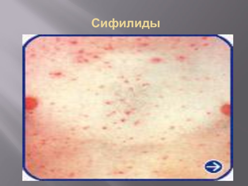 отёк кожи и слизистых оболочек, разрыхление эпителиального покрова, гиперемия сосудов, воспалительная инфильтрация вокруг них, некроз стенок. Сифилиды богаты трепонемами, которые при изъязвлении папул или пустул могут попадать во внешнюю среду. Больной очень заразен. Через 3-6 недель от начала высыпаний – заживление сифилидов.