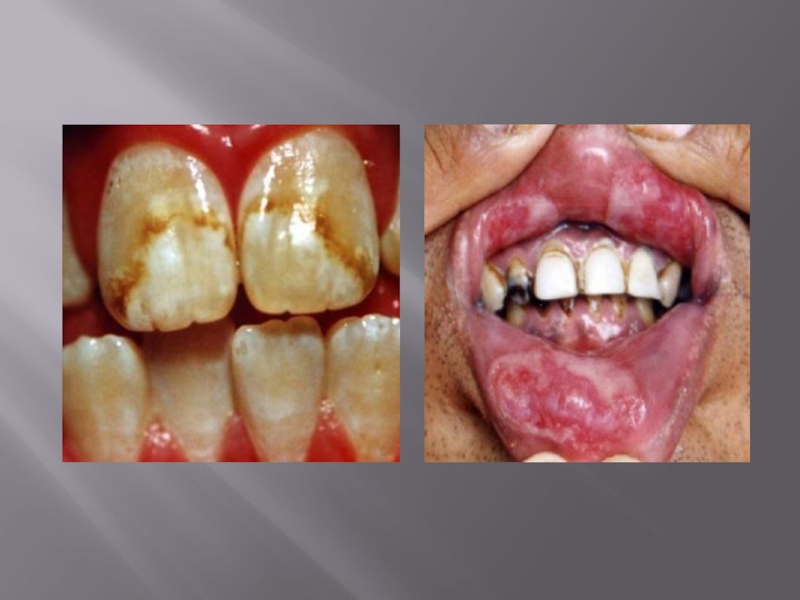 кератит, глухота, деформированные бочкообразные зубы с гипоплазией эмали и образованием выемки на одном или обоих центральных резцах.