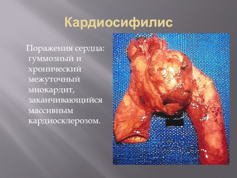 Поражения сердца: гуммозный и хронический межуточный миокардит, заканчивающийся