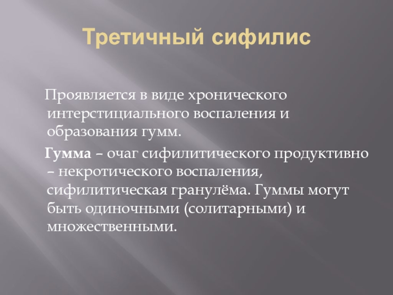 воспаления, сифилитическая гранулёма. Гуммы могут быть одиночными (солитарными) и множественными.