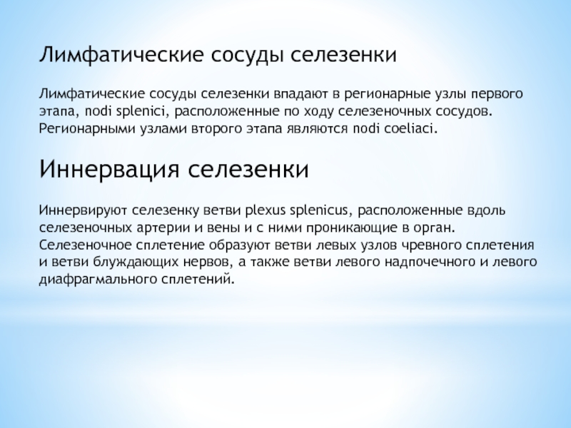 Лимфатические сосуды селезенки впадают в регионарные узлы первого