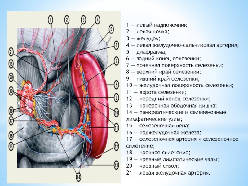 Слайд 131 — левый надпочечник;