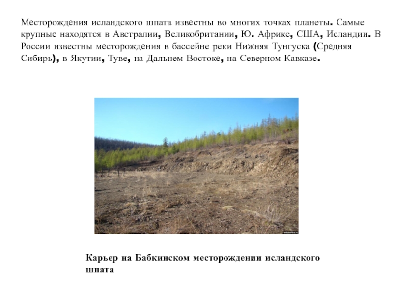 Слайд 11Месторождения исландского шпата известны во многих точках планеты. Самые крупные
