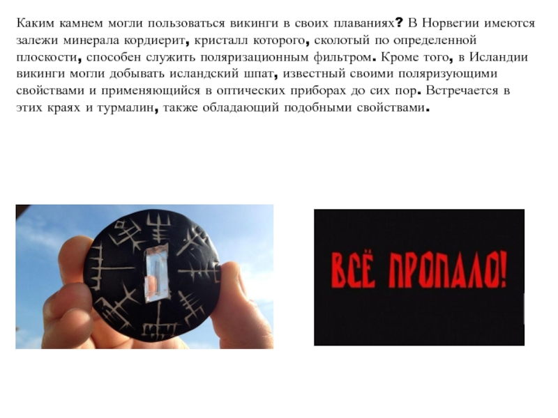 Слайд 18Каким камнем могли пользоваться викинги в своих плаваниях? В Норвегии