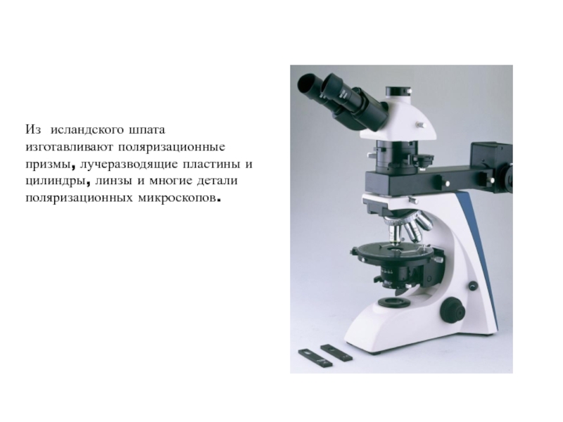 Слайд 21Из исландского шпата изготавливают поляризационные призмы, лучеразводящие пластины и цилиндры,