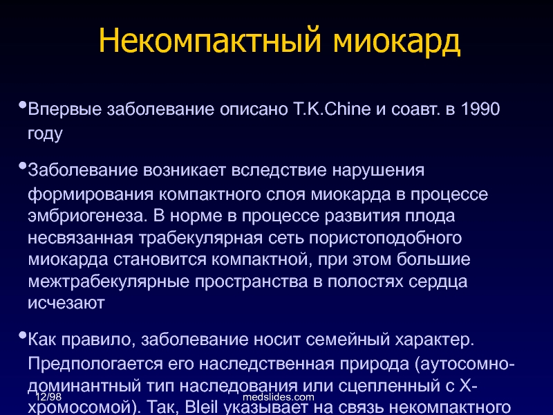 возникает вследствие нарушения формирования компактного слоя миокарда в процессе эмбриогенеза.