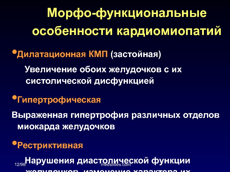 Морфо-функциональные особенности кардиомиопатий