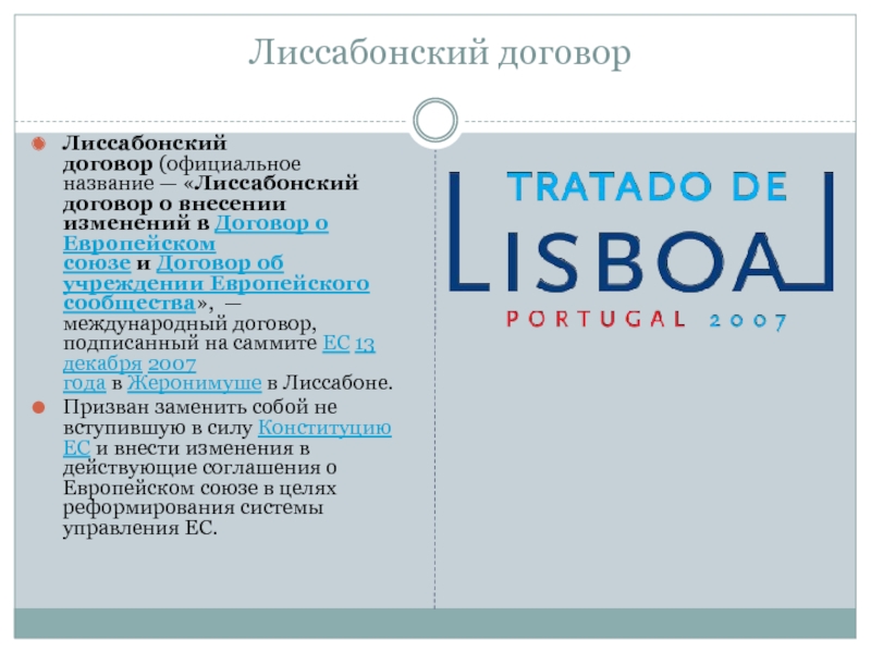 Слайд 5Лиссабонский договор
