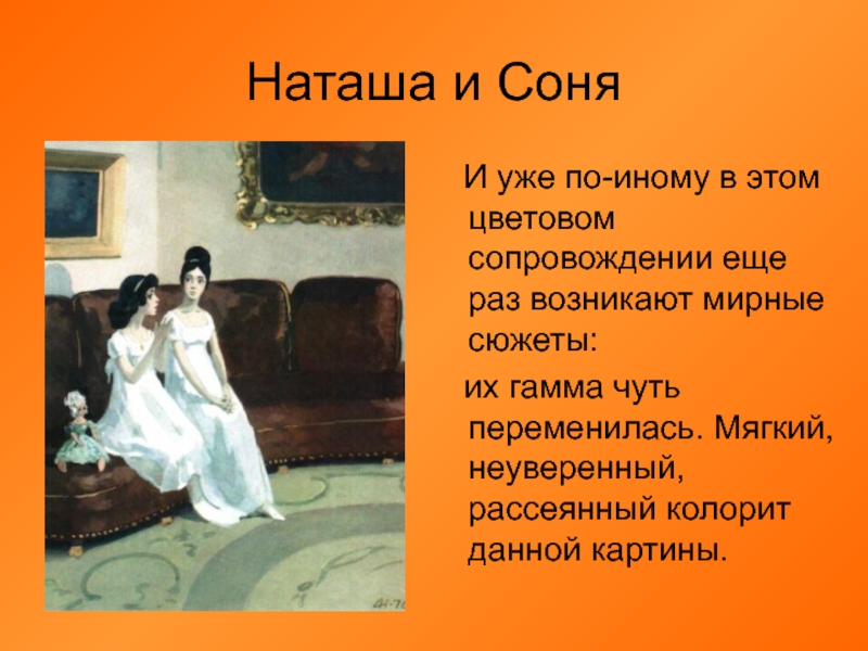 гамма чуть переменилась. Мягкий, неуверенный, рассеянный колорит данной картины.