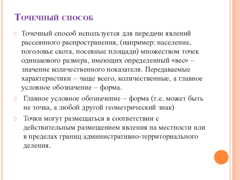 Точечный способ используется для передачи явлений рассеянного распространения, (например: