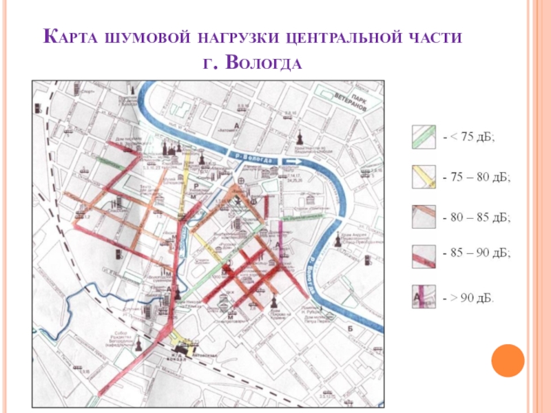Слайд 10Карта шумовой нагрузки центральной части г. Вологда