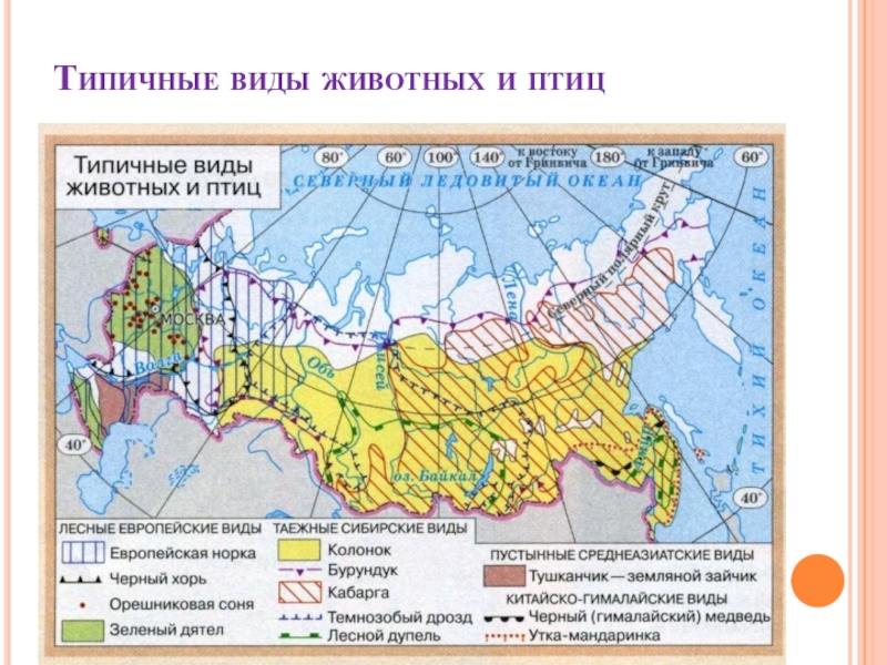 Объект показа – районы распространения, иногда качественные и количественные характеристики.