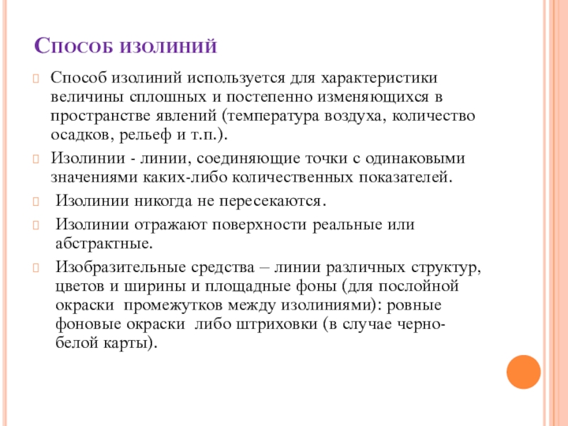 Способ изолиний используется для характеристики величины сплошных и постепенно