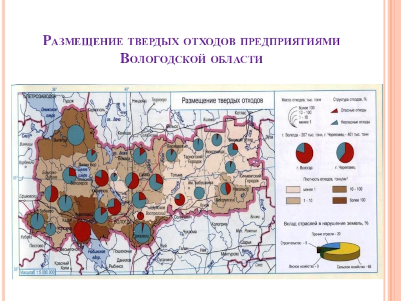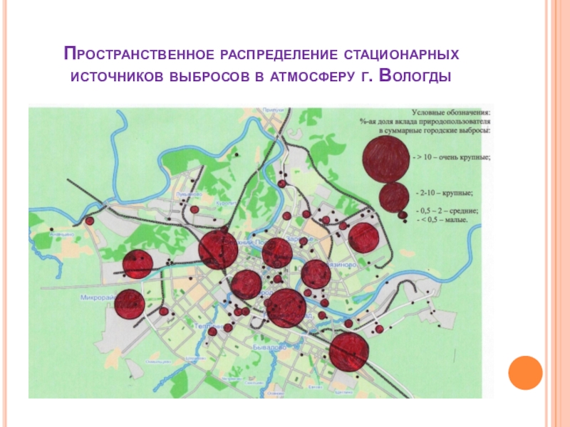 Слайд 6Пространственное распределение стационарных источников выбросов в атмосферу г. Вологды