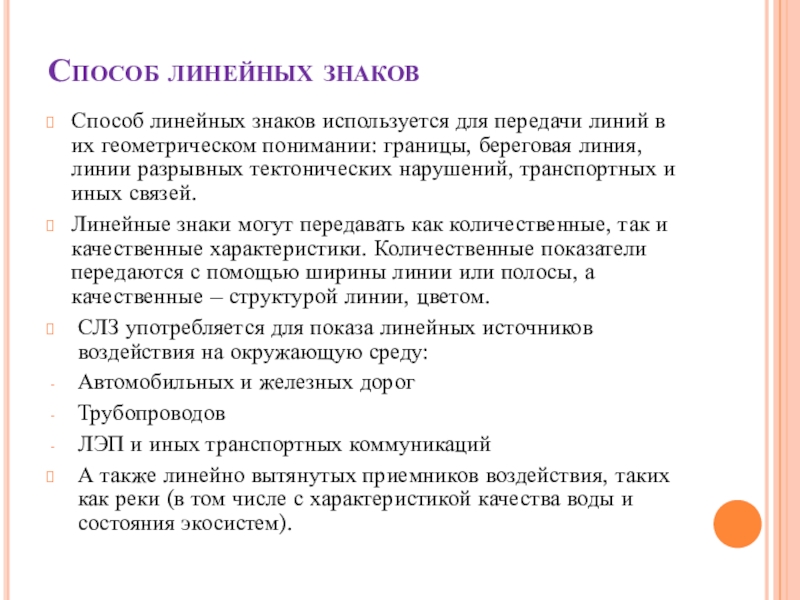 СЛЗ употребляется для показа линейных источников воздействия на окружающую среду: