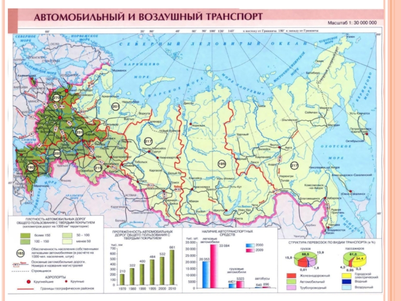 - более 150 км дорог на 1000 км2 территории - находится в Северо-Западном, Центральном, Центрально-Черноземном, Волго-Вятском и Северо - Кавказском экономических районах.
