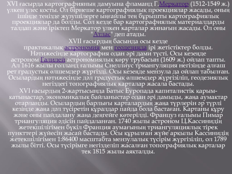 Слайд 8XVI ғасырда картографияның дамуына фламанд Г.Меркатор (1512-1549 ж.) үлкен үлес қосты.