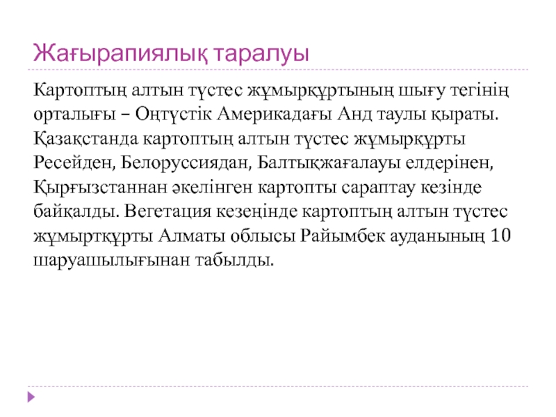 Слайд 1Картоптың алтын түстес жұмырқұрты – Золотистая нематода картофеля