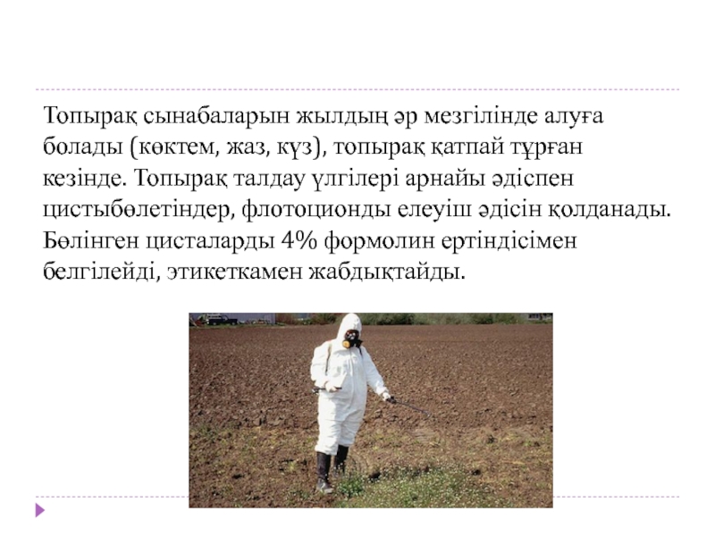 Слайд 20Топырақ сынабаларын жылдың әр мезгілінде алуға болады (көктем, жаз, күз),