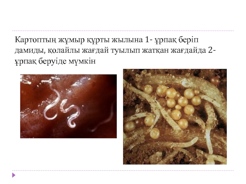 Слайд 15Картоптың жұмыр құрты жылына 1- ұрпақ беріп дамиды, қолайлы жағдай