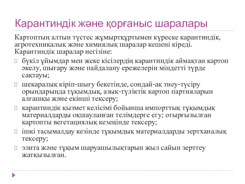 Картоптың алтын түстес жұмыртқұртымен күреске карантиндік, агротехникалық
