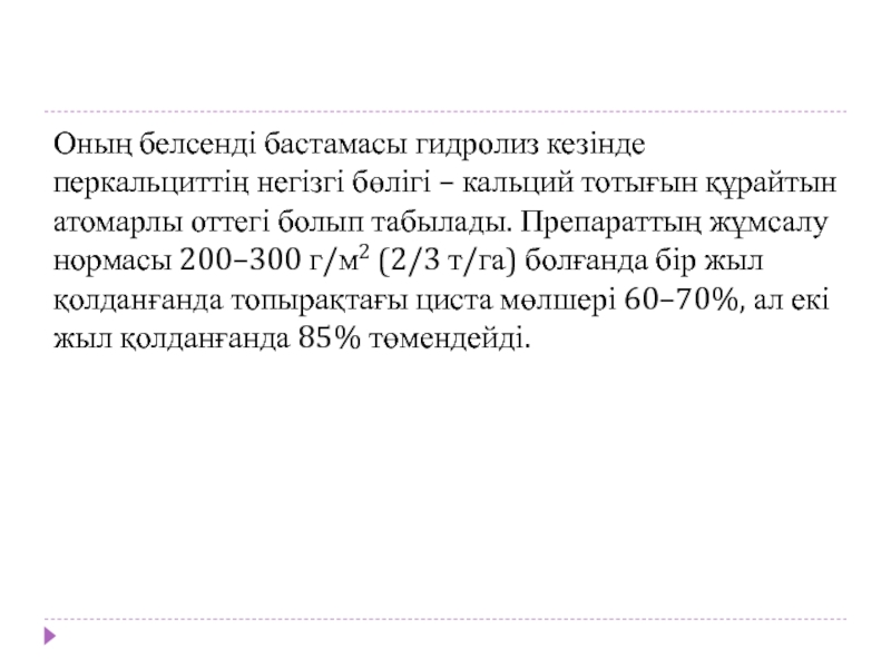 Слайд 27Оның белсенді бастамасы гидролиз кезінде перкальциттің негізгі бөлігі – кальций