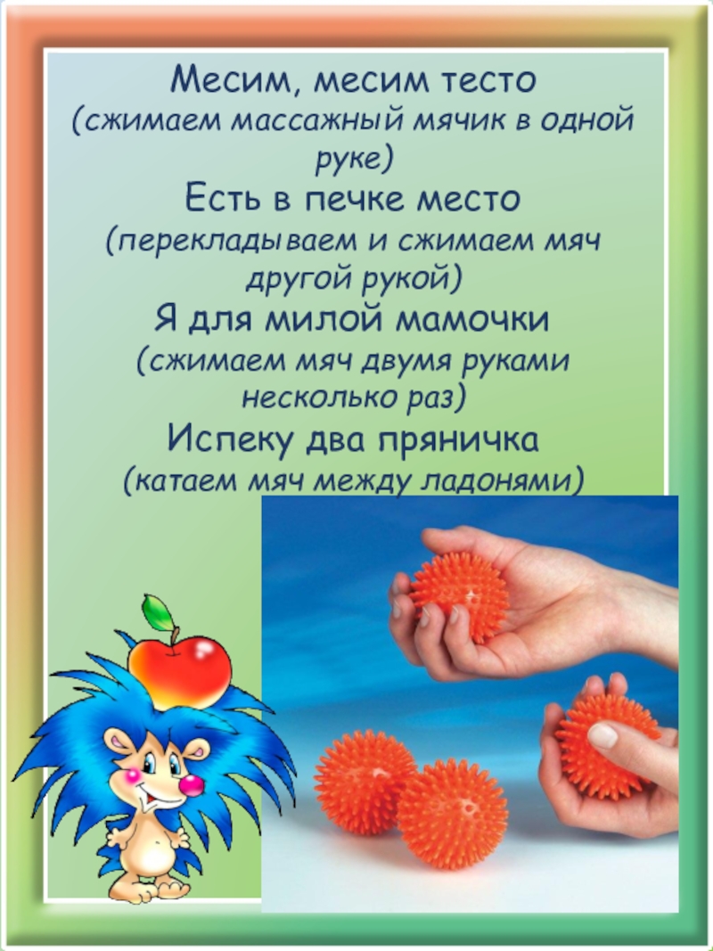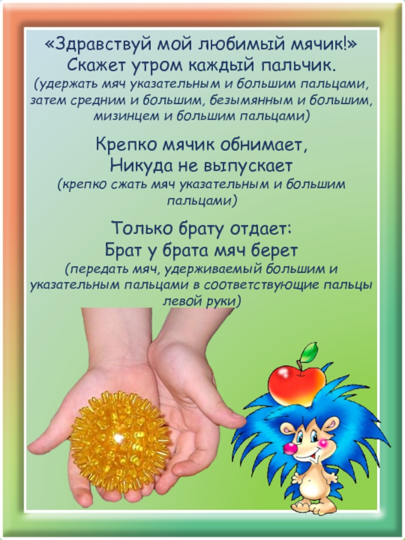 приток крови и стимулируют кровообращение. Игры с массажными мячиками можно проводить как по телу малыша, так и используя только ручки. Эти мячики легко умещаются в детской ладошке, что позволяет с ними весело играть и развивать мелкую моторику рук.