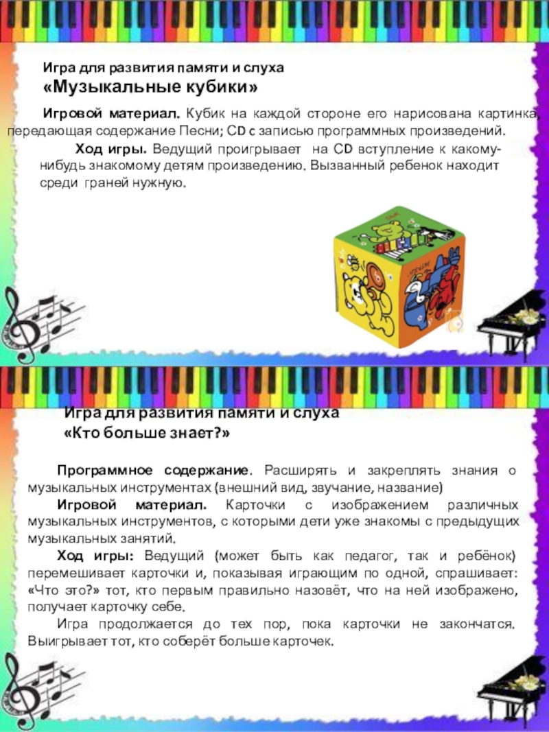 Ход игры. Ведущий проигрывает на СD вступление к какому-нибудь знакомому детям произведению. Вызванный ребенок находит среди граней нужную.