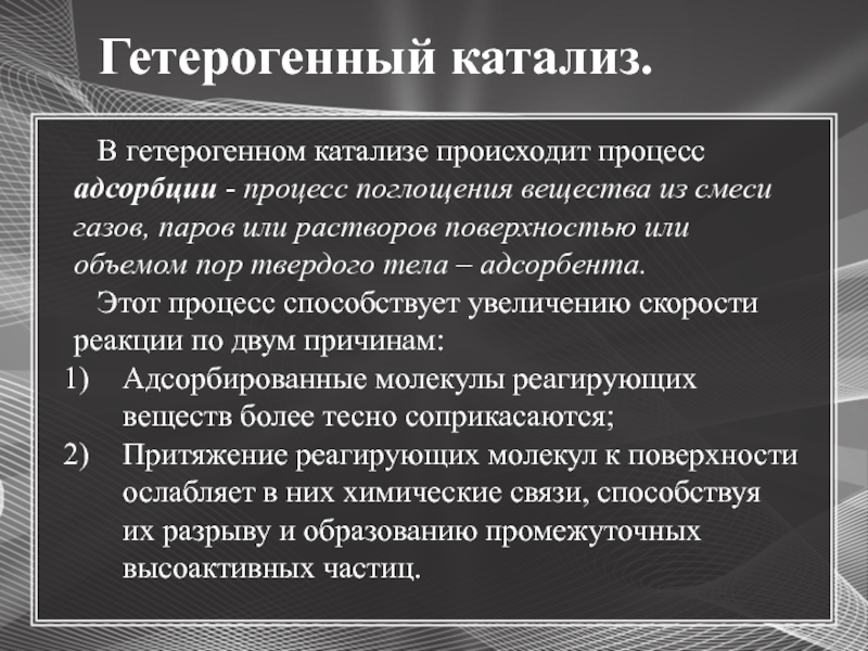 веществ носит название катализа, а замедление – ингибирования.