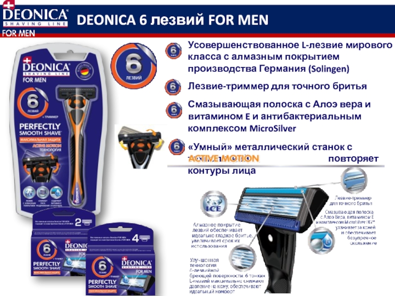 6-ти лезвийной бреющей поверхности снижают давление на кожу, обеспечивая высокий комфорт при бритье