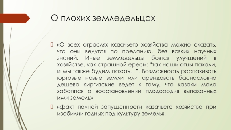 «факт полной запущенности казачьего хозяйства при изобилии годных под культуру земель».