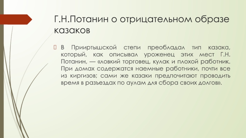 Слайд 6Г.Н.Потанин о отрицательном образе казаков