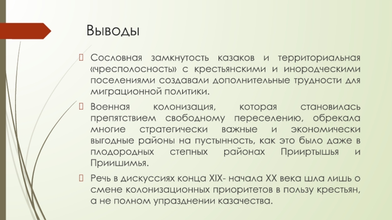 Речь в дискуссиях конца XIX- начала XX века шла лишь о смене колонизационных приоритетов в пользу крестьян, а не полном упразднении казачества.