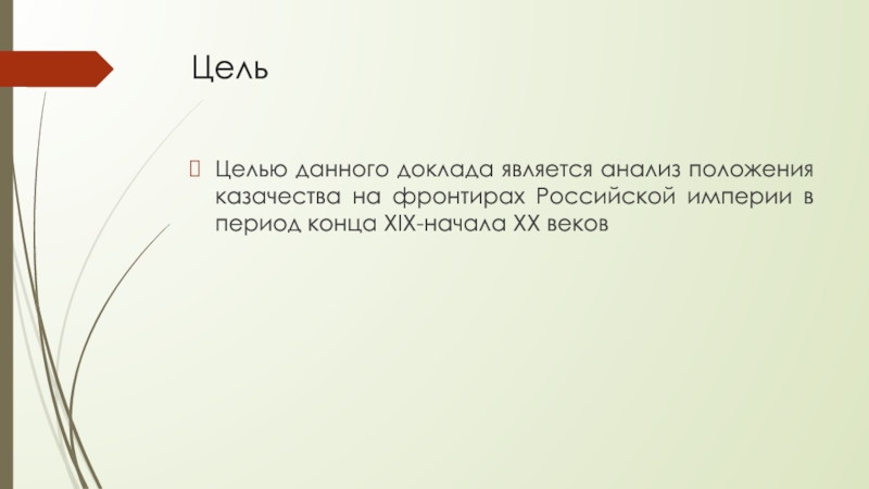Целью данного доклада является анализ положения казачества на фронтирах Российской