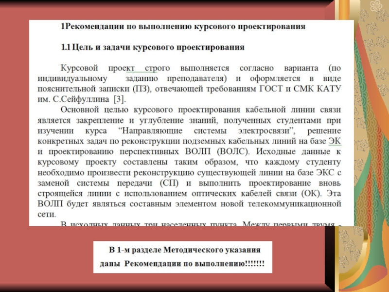 ПРОЕКТИРОВАНИЕ КАБЕЛЬНЫХ ЛИНИЙ CВЯЗИ