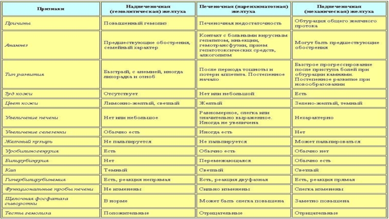 желтухи, и механизма возникновения выделяют следующие виды желтухи: