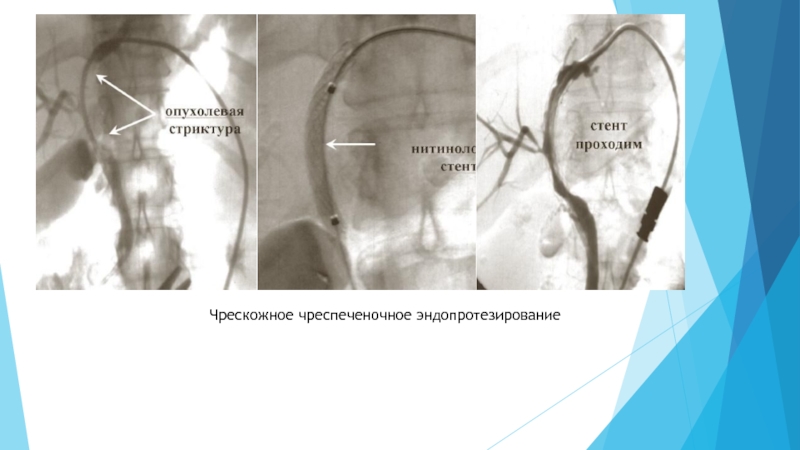 Слайд 57Чрескожное чреспеченочное эндопротезирование