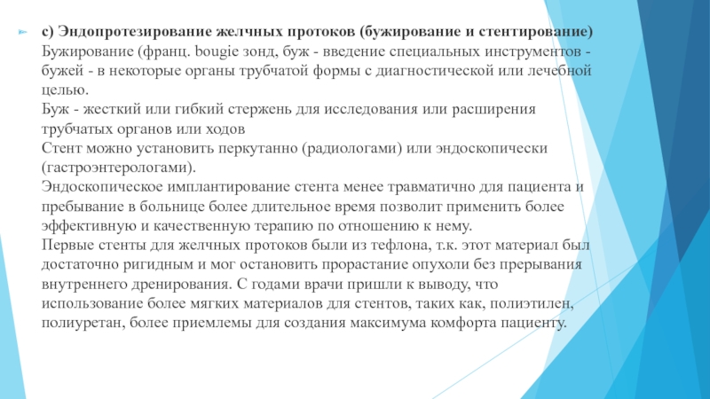 Слайд 51c) Эндопротезирование желчных протоков (бужирование и стентирование)