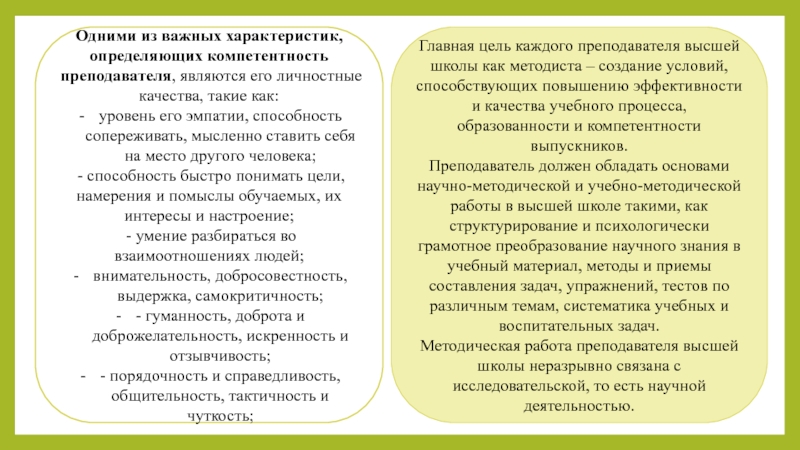 Одними из важных характеристик, определяющих компетентность преподавателя, являются его личностные качества, такие как:
