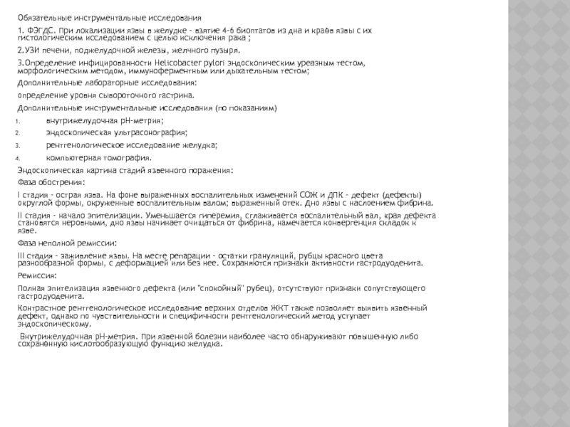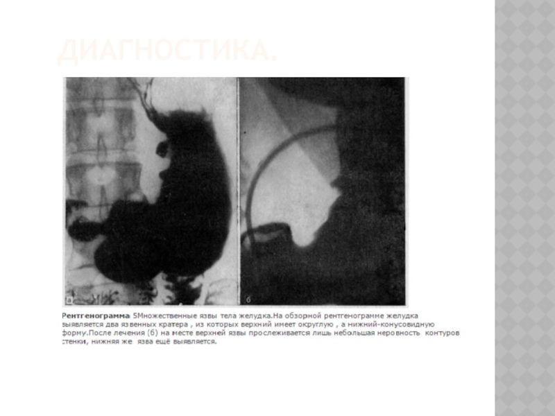 Эффективность лечения при язве желудка контролируют эндоскопическим методом через 8 нед., при дуоденальной язве — через 4 нед