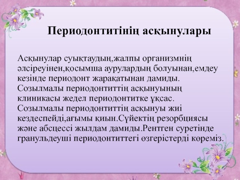 Казакстан-Ресей Медицина Университети   КАФЕДРА Хирургия СТОМАТОЛОГИ
