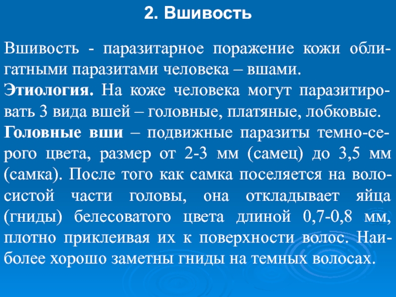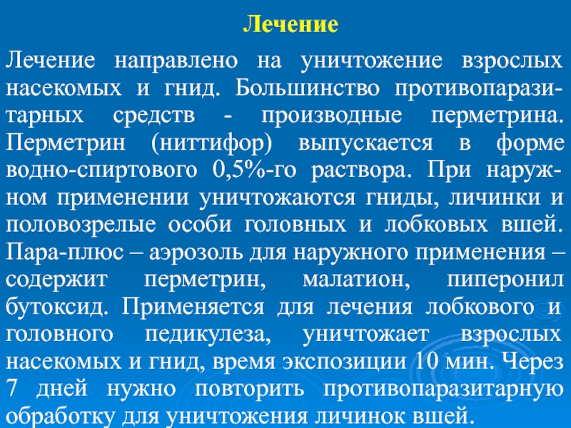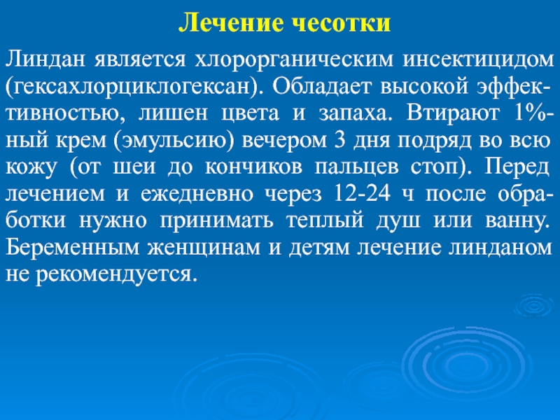 Последовательность противопаразитарной обрабо-тки кожи одинакова при всех методах лечения. После