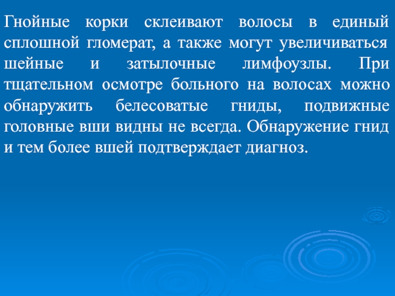 больного обнаруживают точечные и линейные экскориации (свидетельствуют о зуде), а